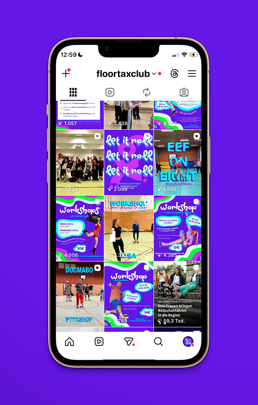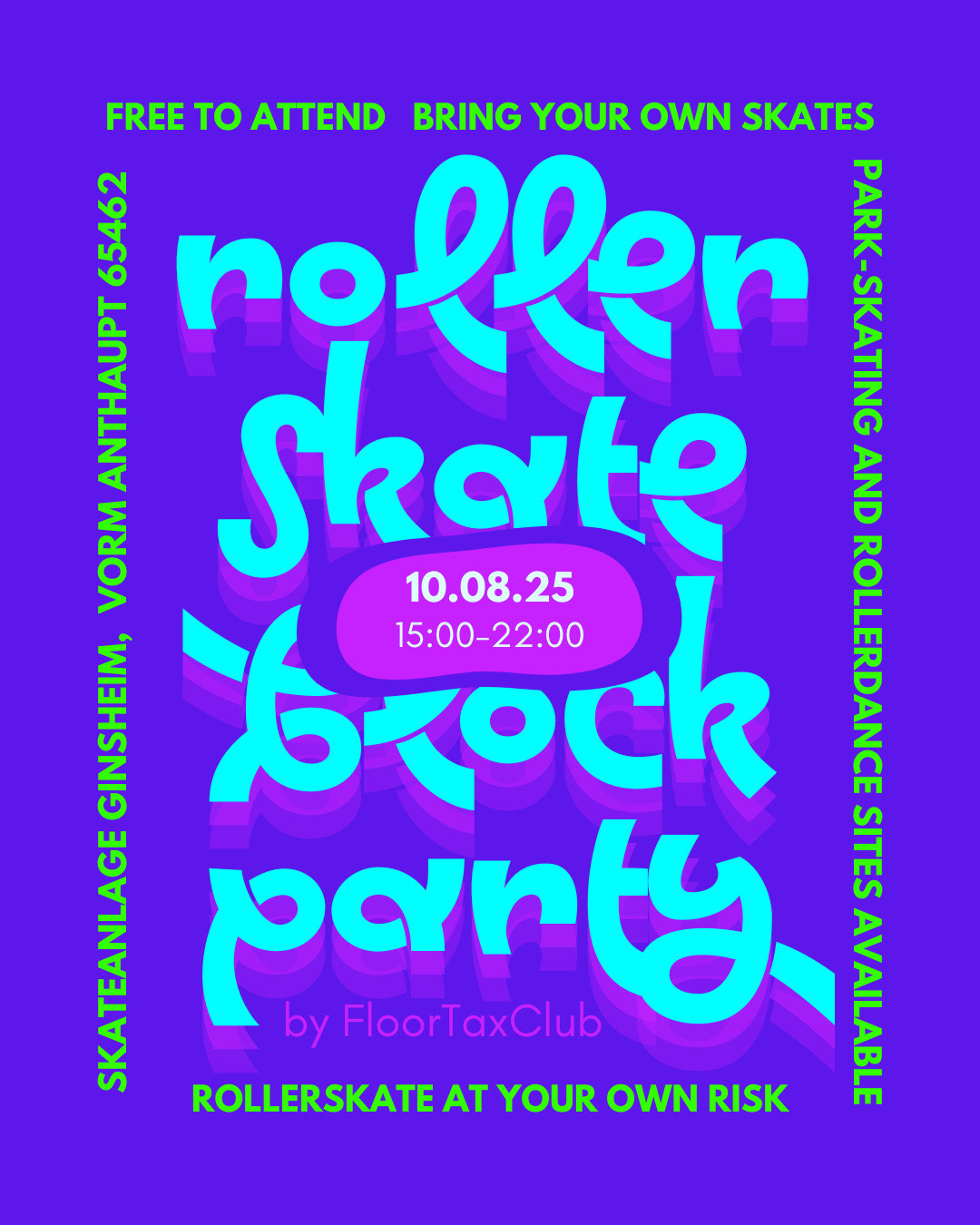 Für den FloorTaxClub, einen Rollschuhclub in der Rhein-Main-Region, habe ich ein visuelles Konzept entwickelt, das die aktive, offene Community und ihre regelmäßigen Skate-Events und Workshops repräsentiert.